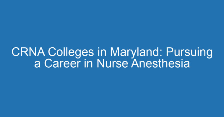 Are you considering becoming a Certified Registered Nurse Anesthetist (CRNA)? If you’re passionate about providing anesthesia care and want to work in a challenging but rewarding field, Maryland offers several excellent CRNA colleges to help you achieve your goals.